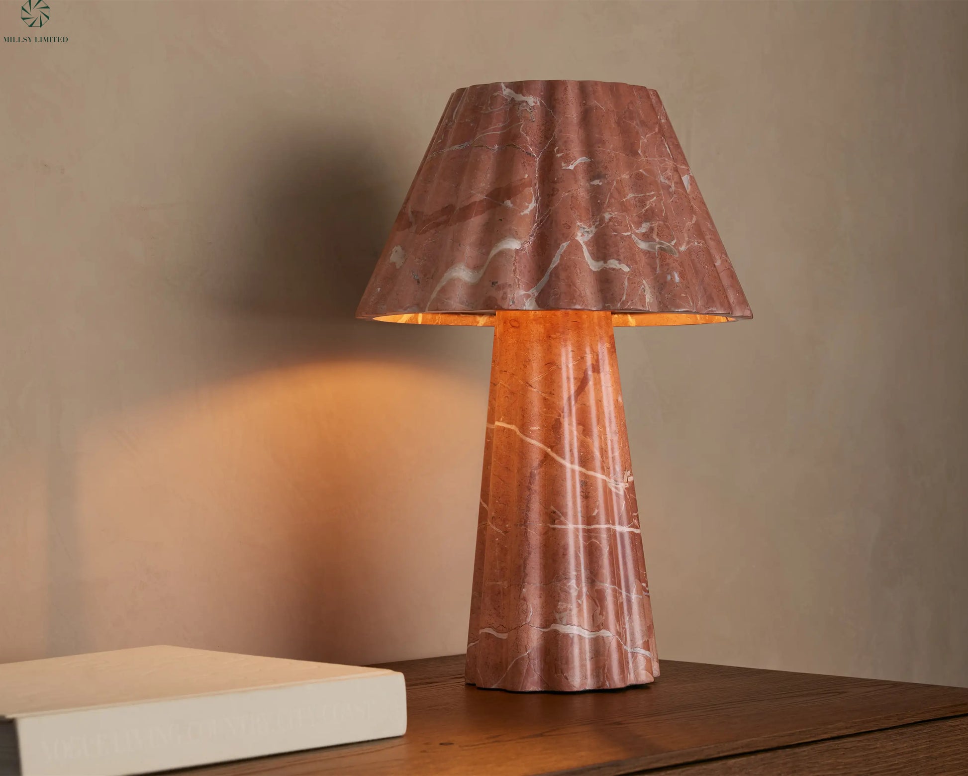 The natural stone color and pattern vary, making each lamp unique.